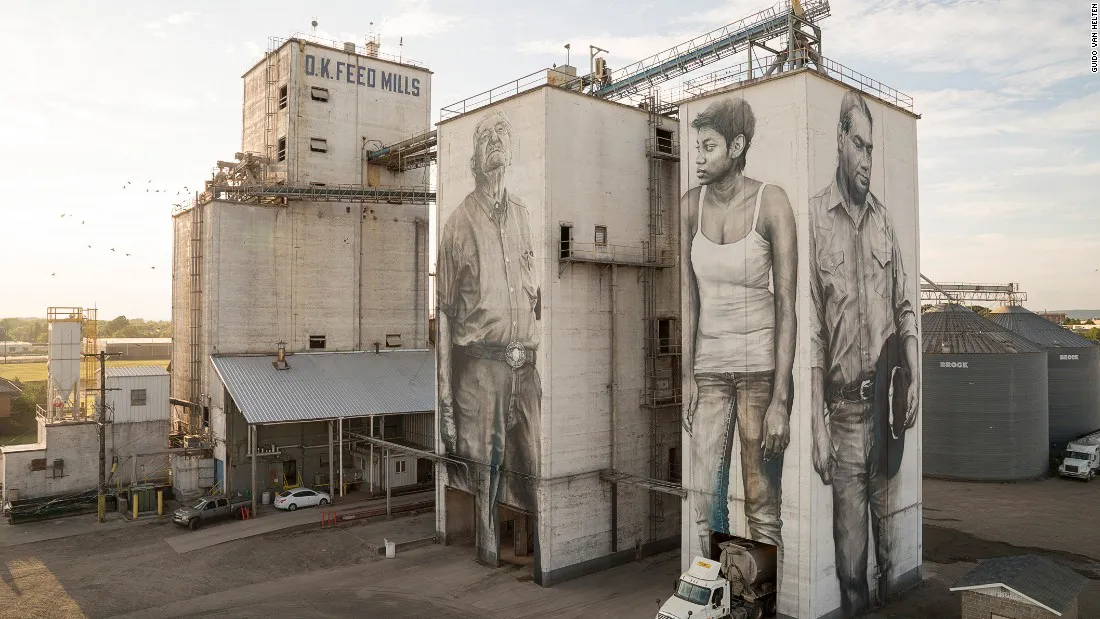 El reconocido artista australiano Guido van Helten pasó días enteros adornando las gigantescas estructuras del silo de granos situado en la ciudad australiana de Coonalpyn, logrando que la gente las vuelva a mirar